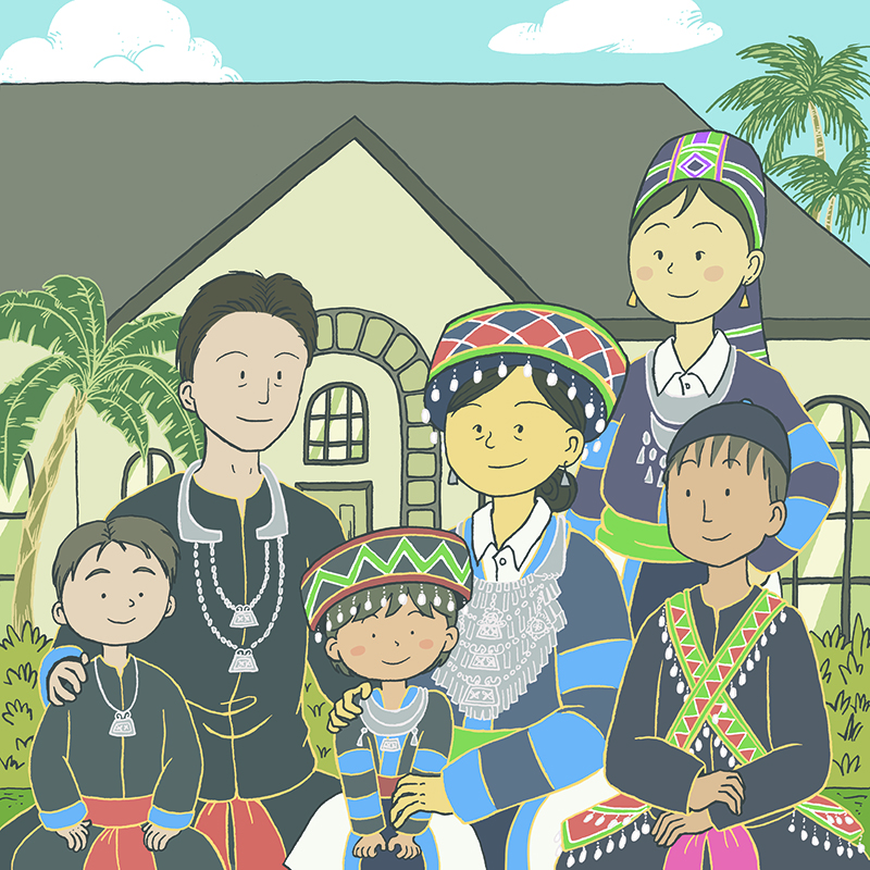 An illustration from See Lor’s “Tsev Neeg Uas Kuv Hlub/The Family that I Love.”